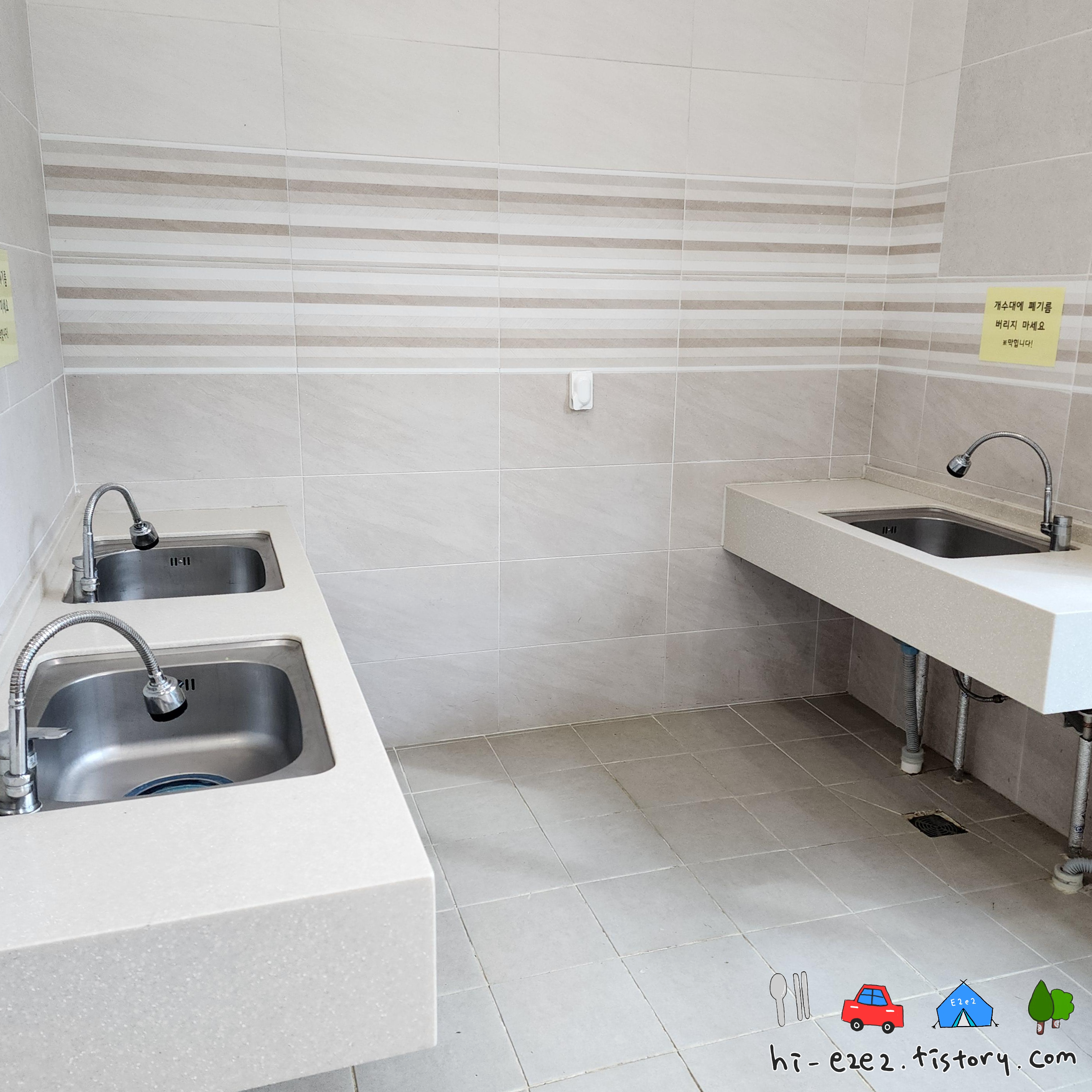 취사장과 양치할 수 있는 세면대가 마련되어 있어요ㅎㅎ
