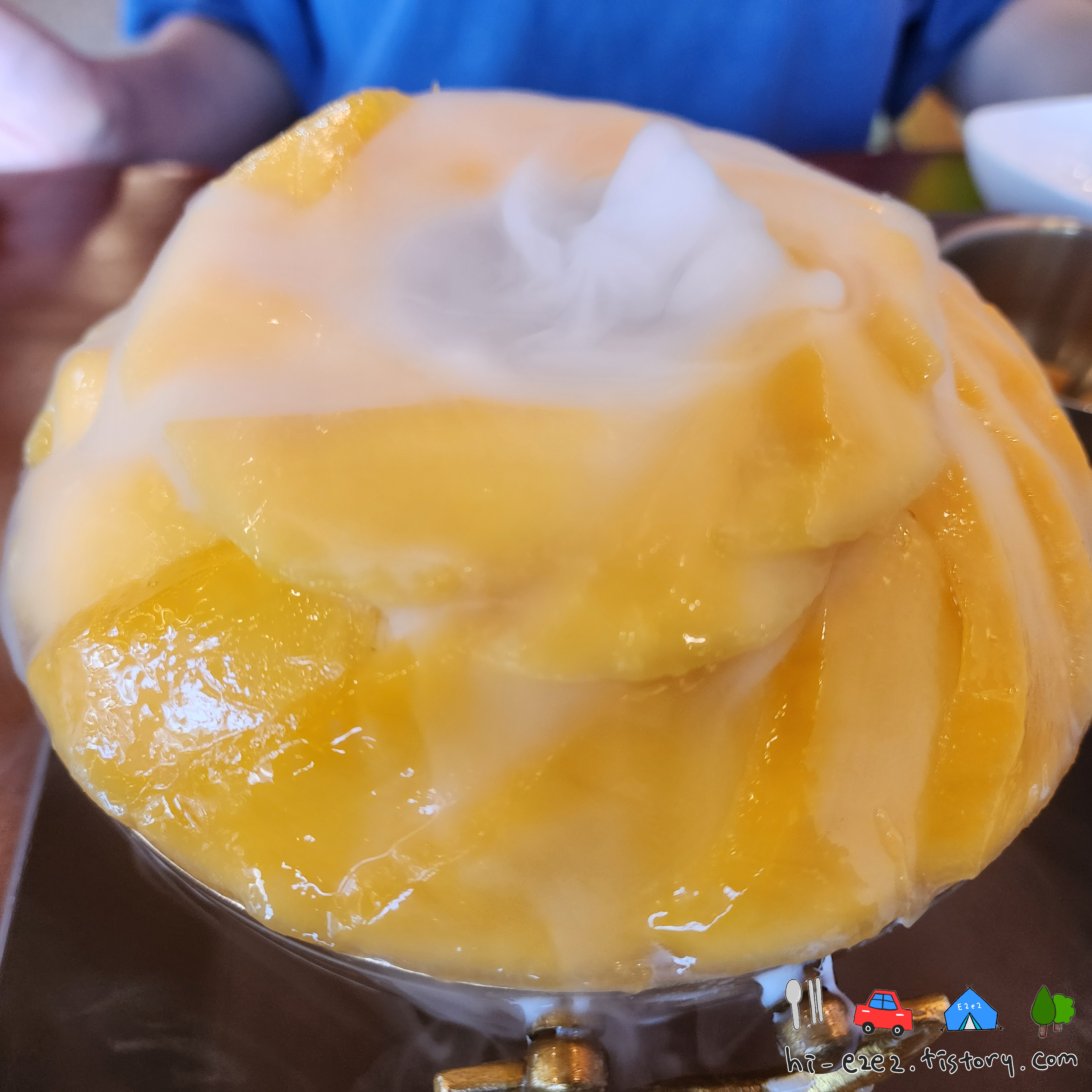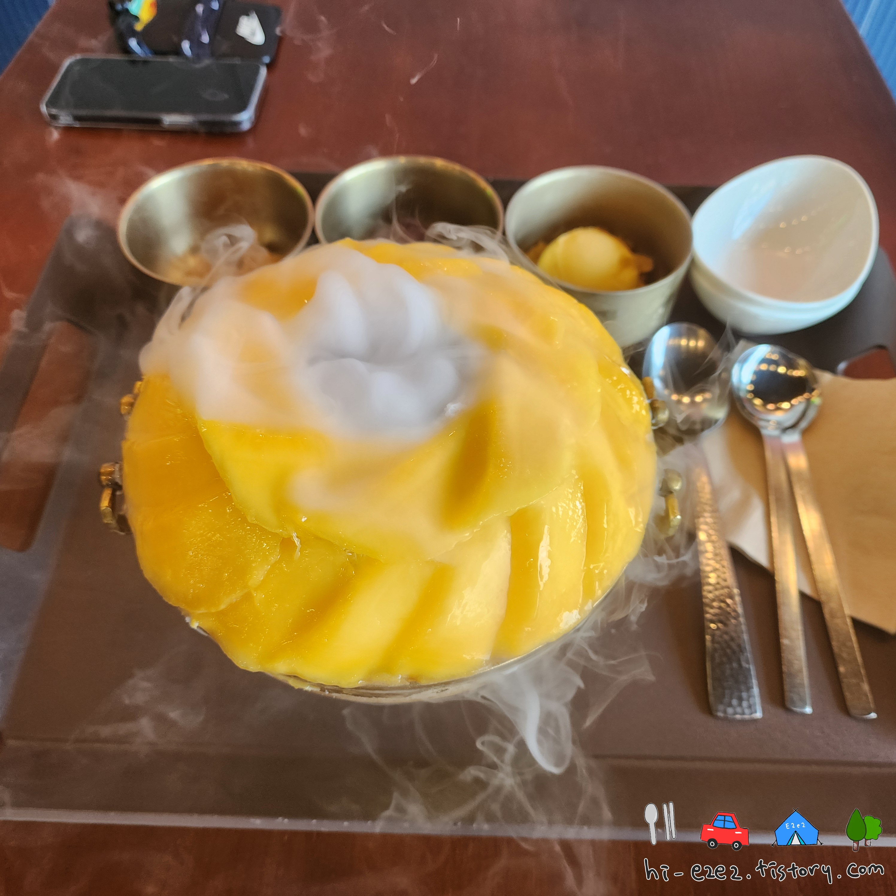 드라이아이스 폴폴 나오고 있는 맹고빙수