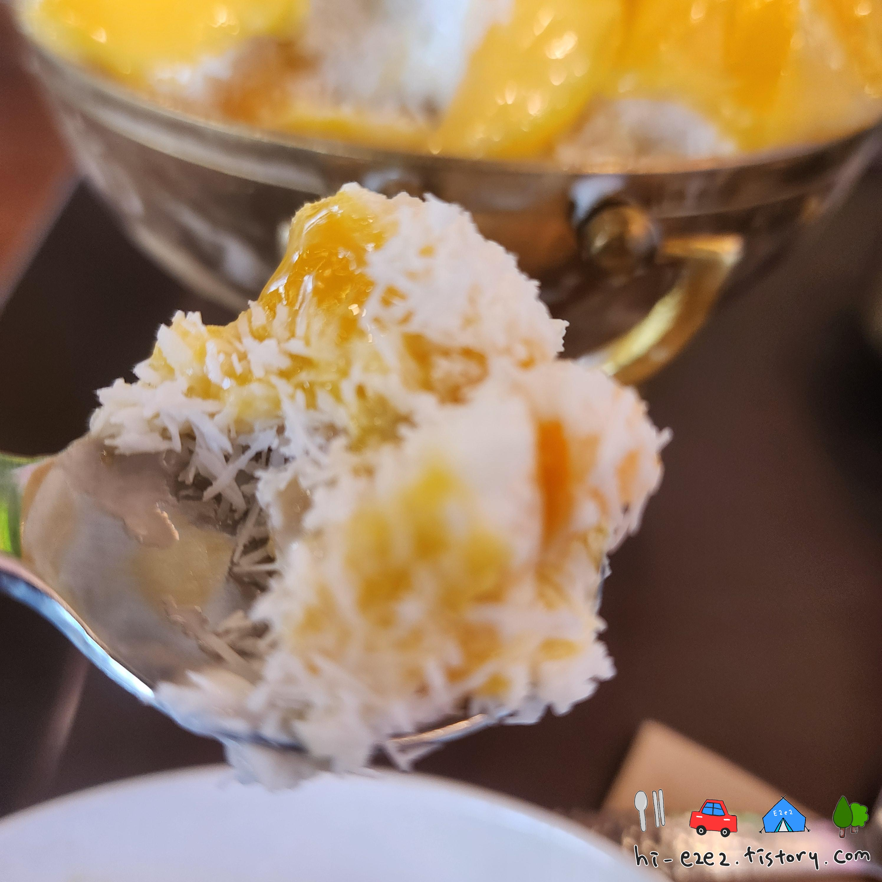 제가 먹었을 땐 망고가 철이 아니라 살짝 밍밍했지만