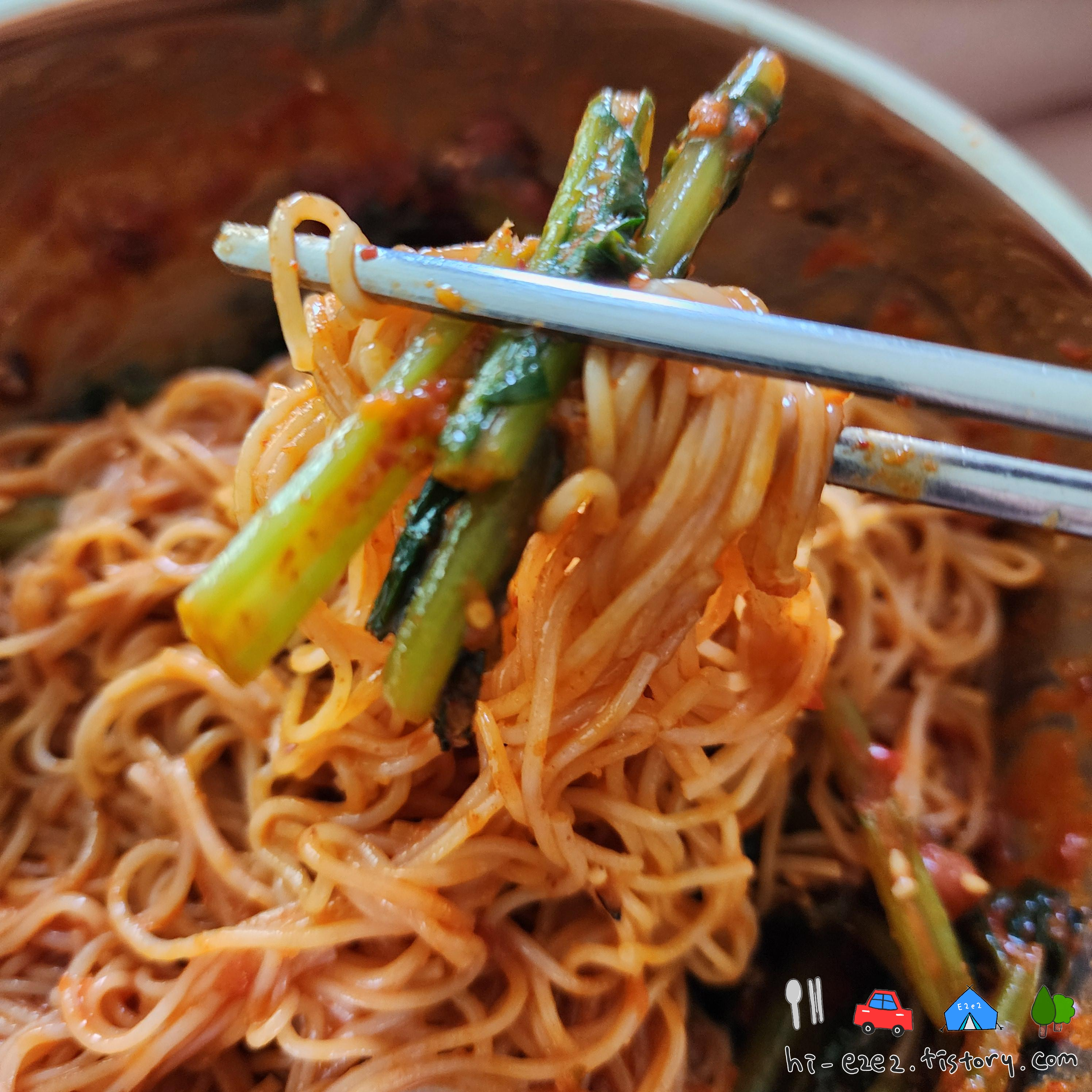 비빔냉면을 먹어보니 면을 따로 삶길 잘했다고 생각이 들었답니다!