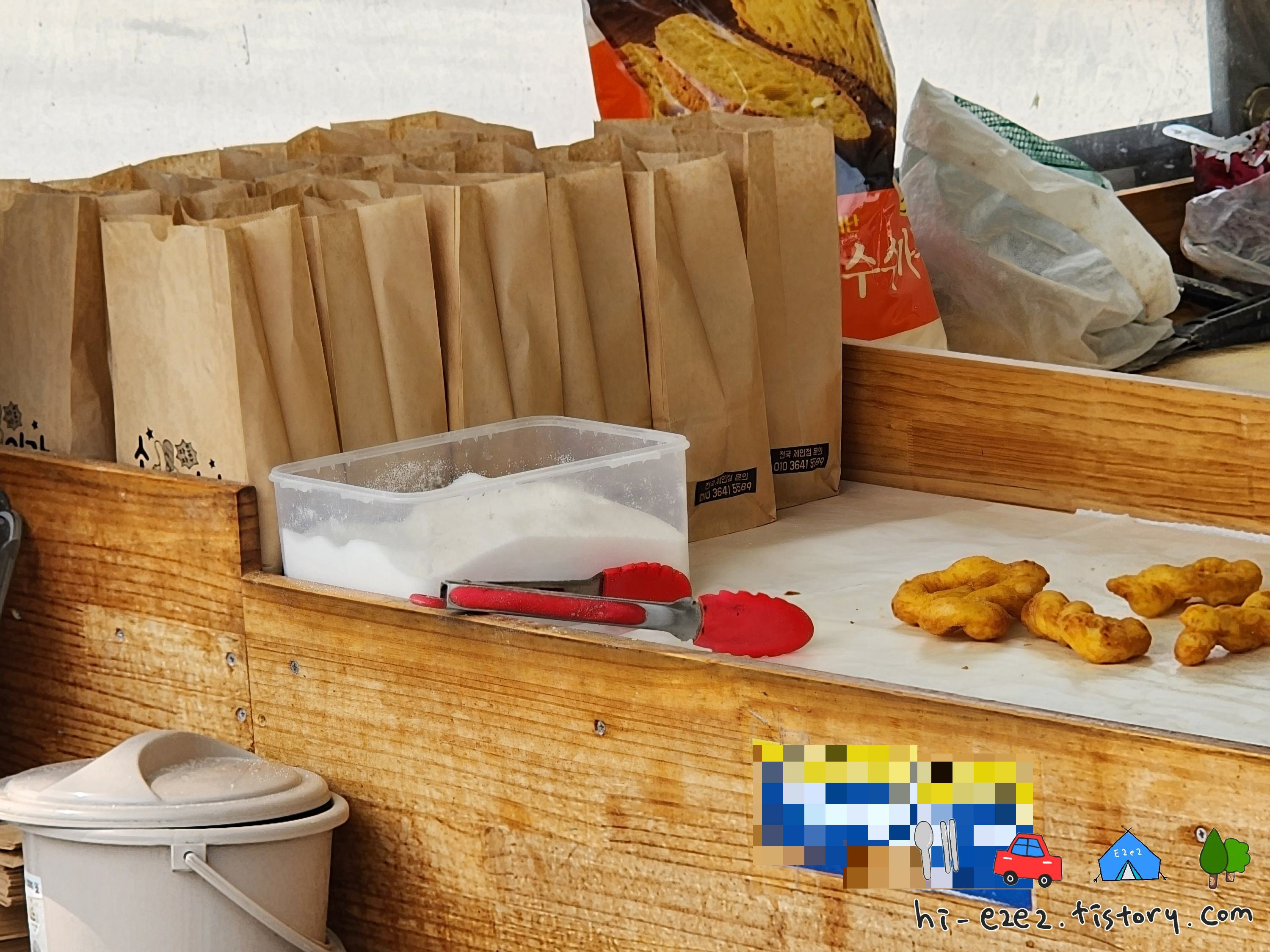 꽈배기 갓 튀기신건 밖에서 식히고 봉지에 넣어두시더라고요ㅎㅎ