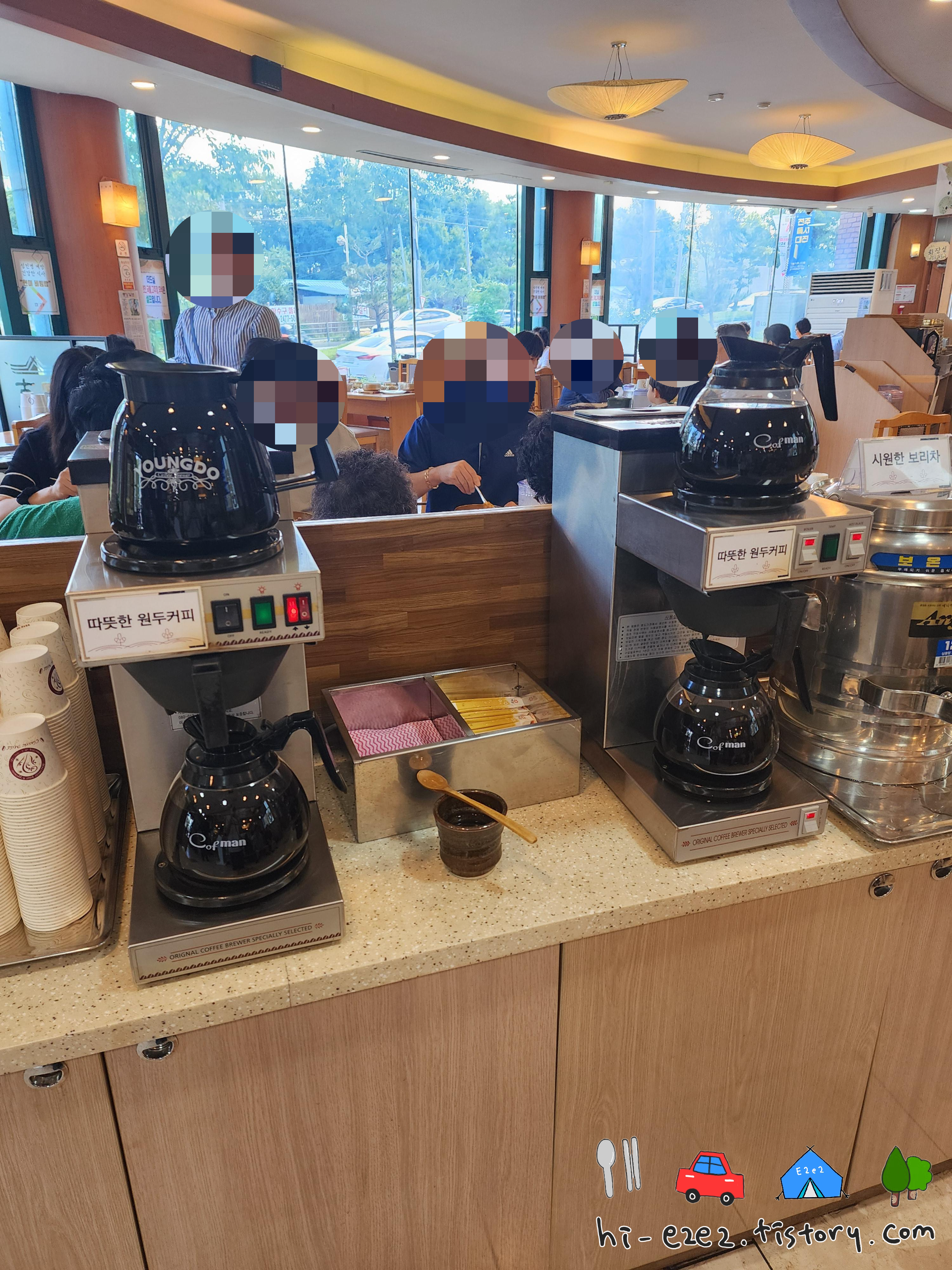 후식으로 마련된 커피와 매실차, 오미자차~