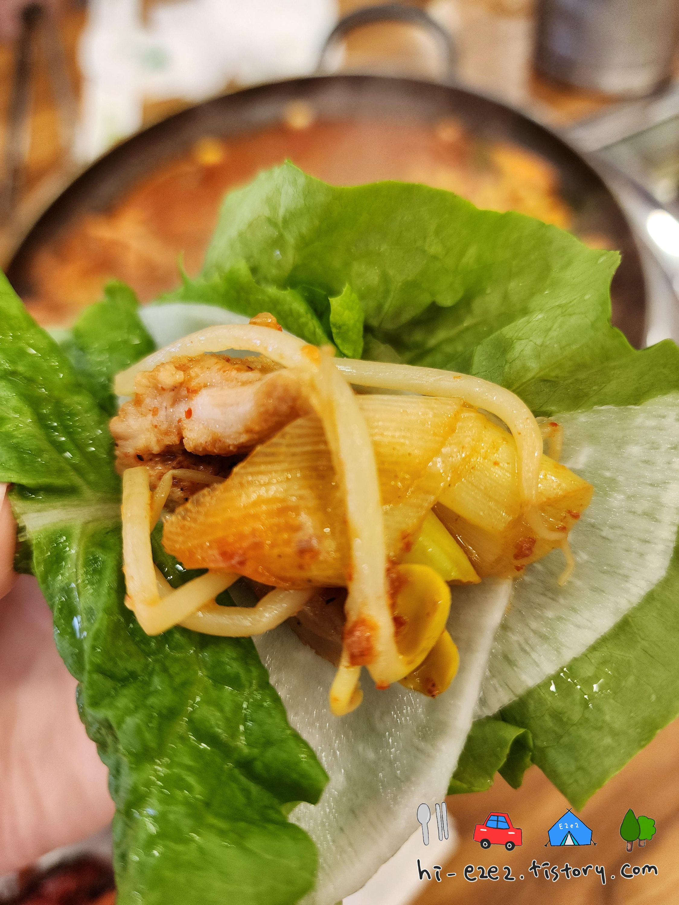 쌈도싸서 한 입 먹어봤는데 역시나 쌈 싸서 먹는게 더 맛있더라고요ㅎㅎ