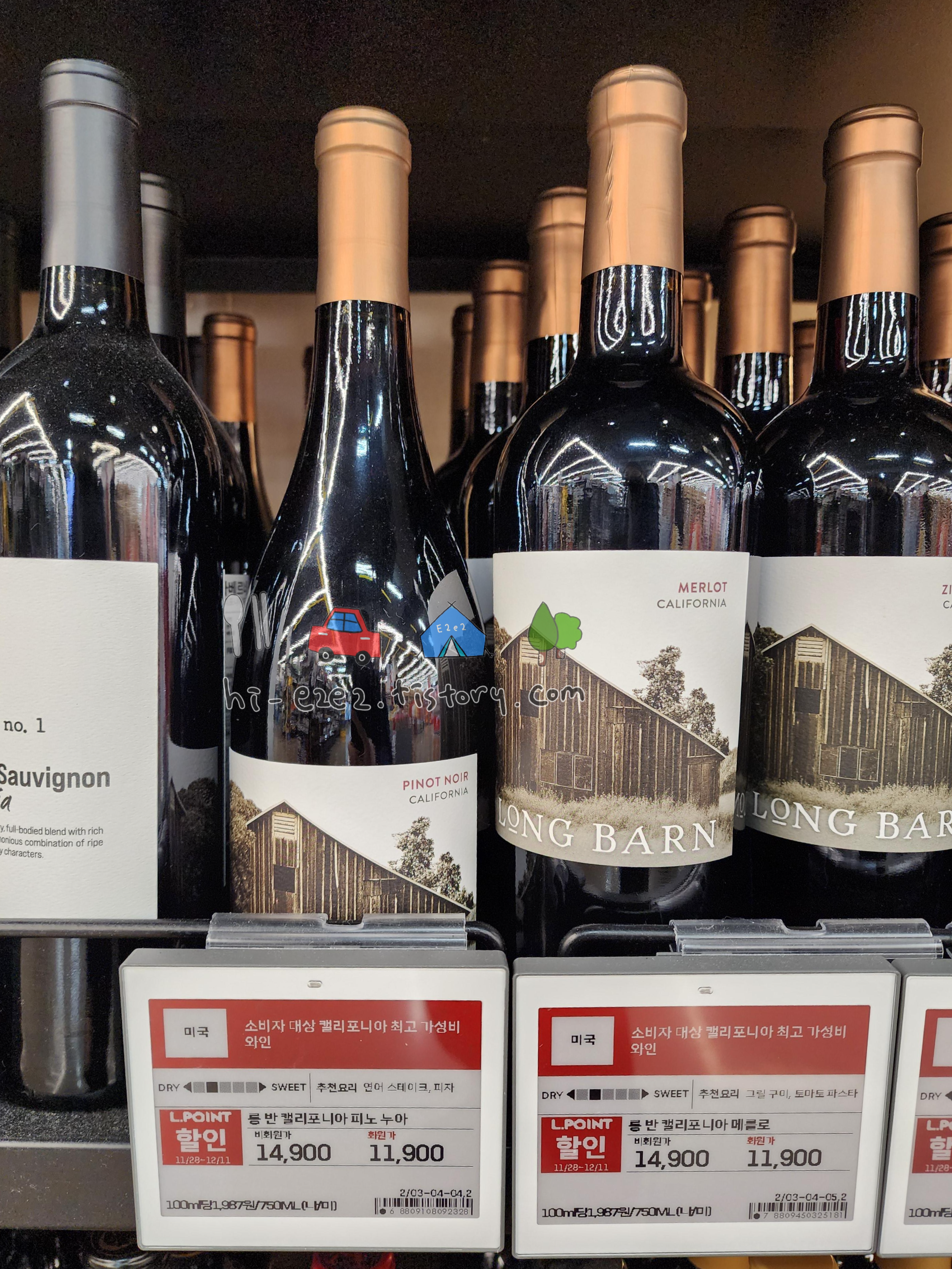 롱 반 캘리포니아 피노누아 와인은 롯데마트에서 회원가 11,900원에 구매하실 수 있어요~