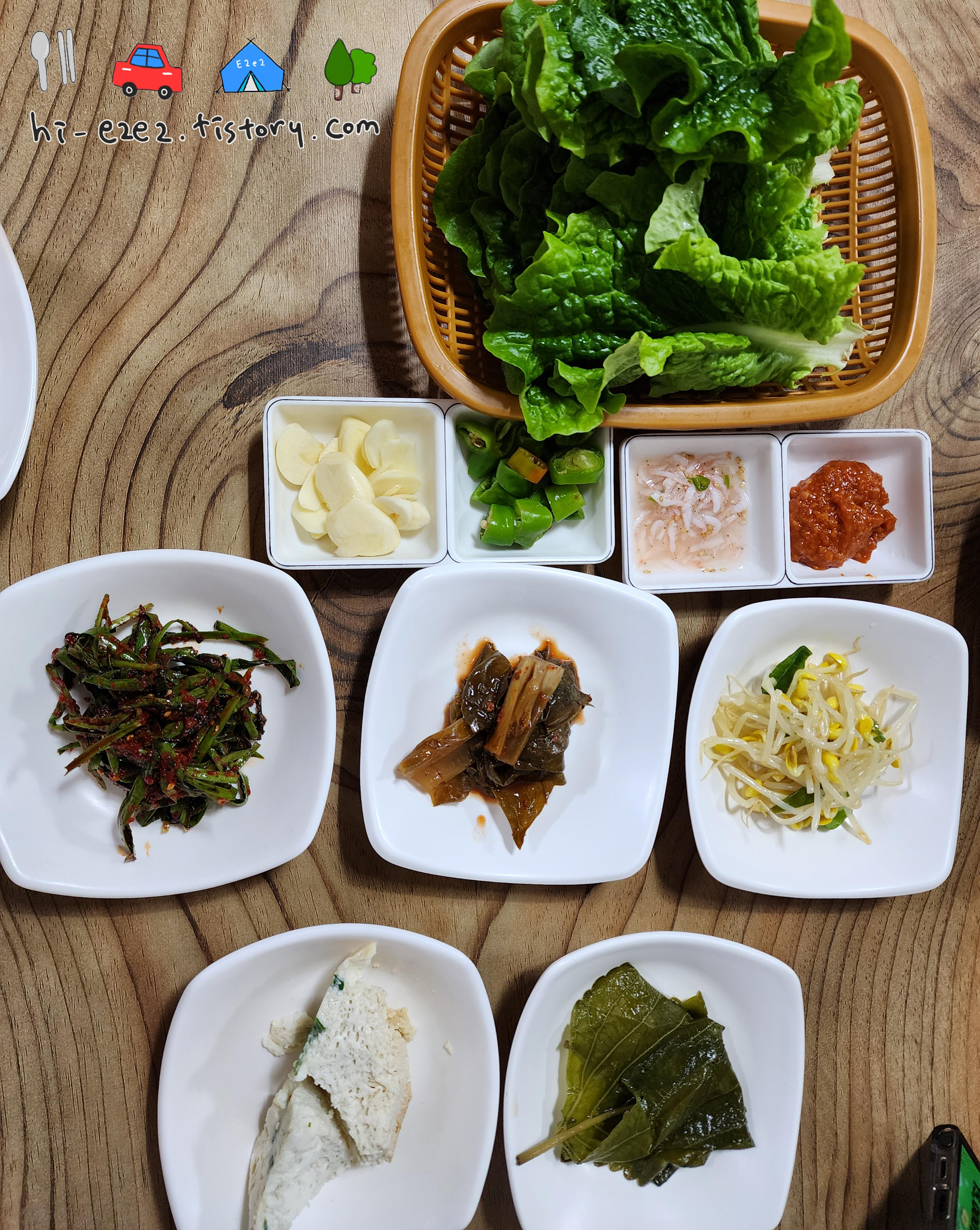 마늘, 고추, 무김치, 겉절이까지 다 준비되어 있어서