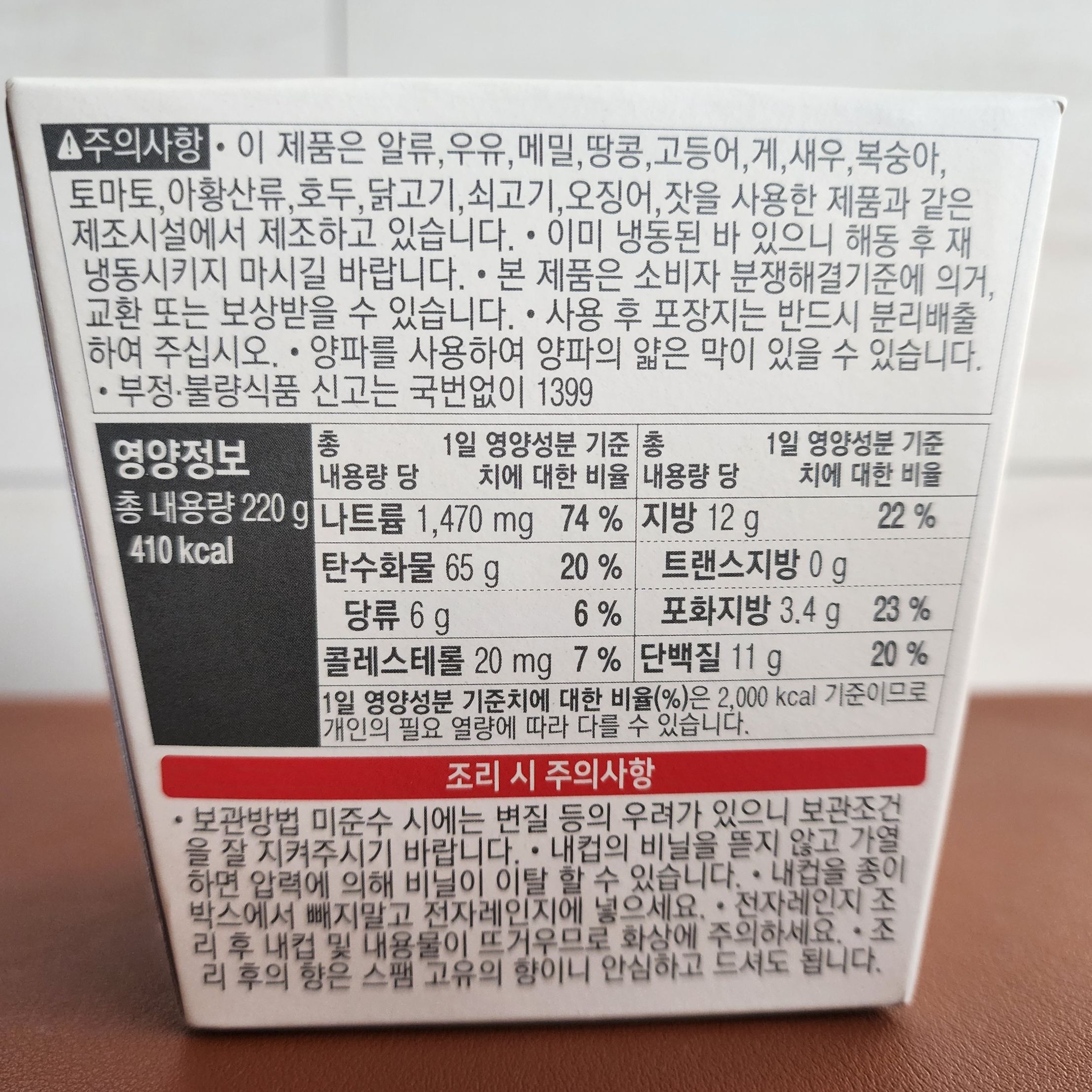 중량: 220g / 열량: 410kcal
