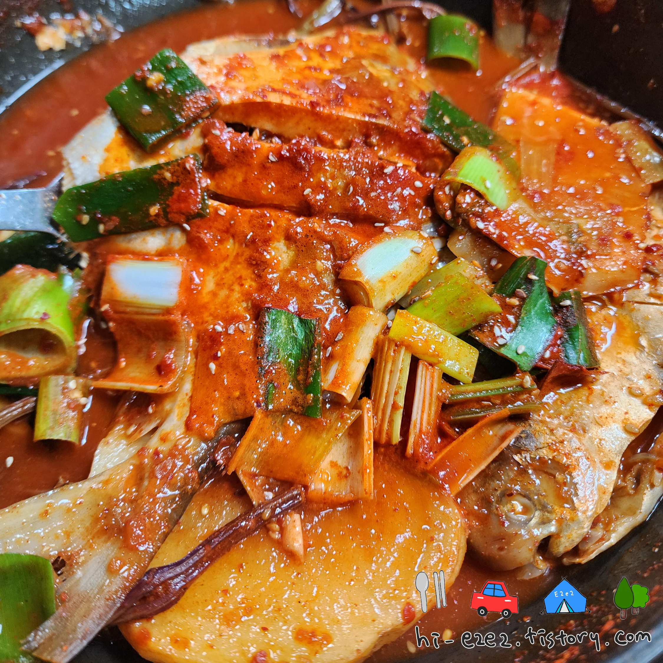 병어조림은 양념이 진하지만 감칠맛이 아쉬웠습니다.