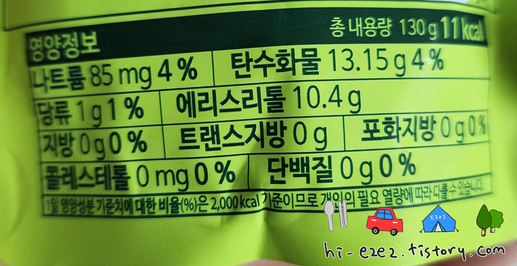 당류는 1g, 에리스리톨이 주로 들어 있어