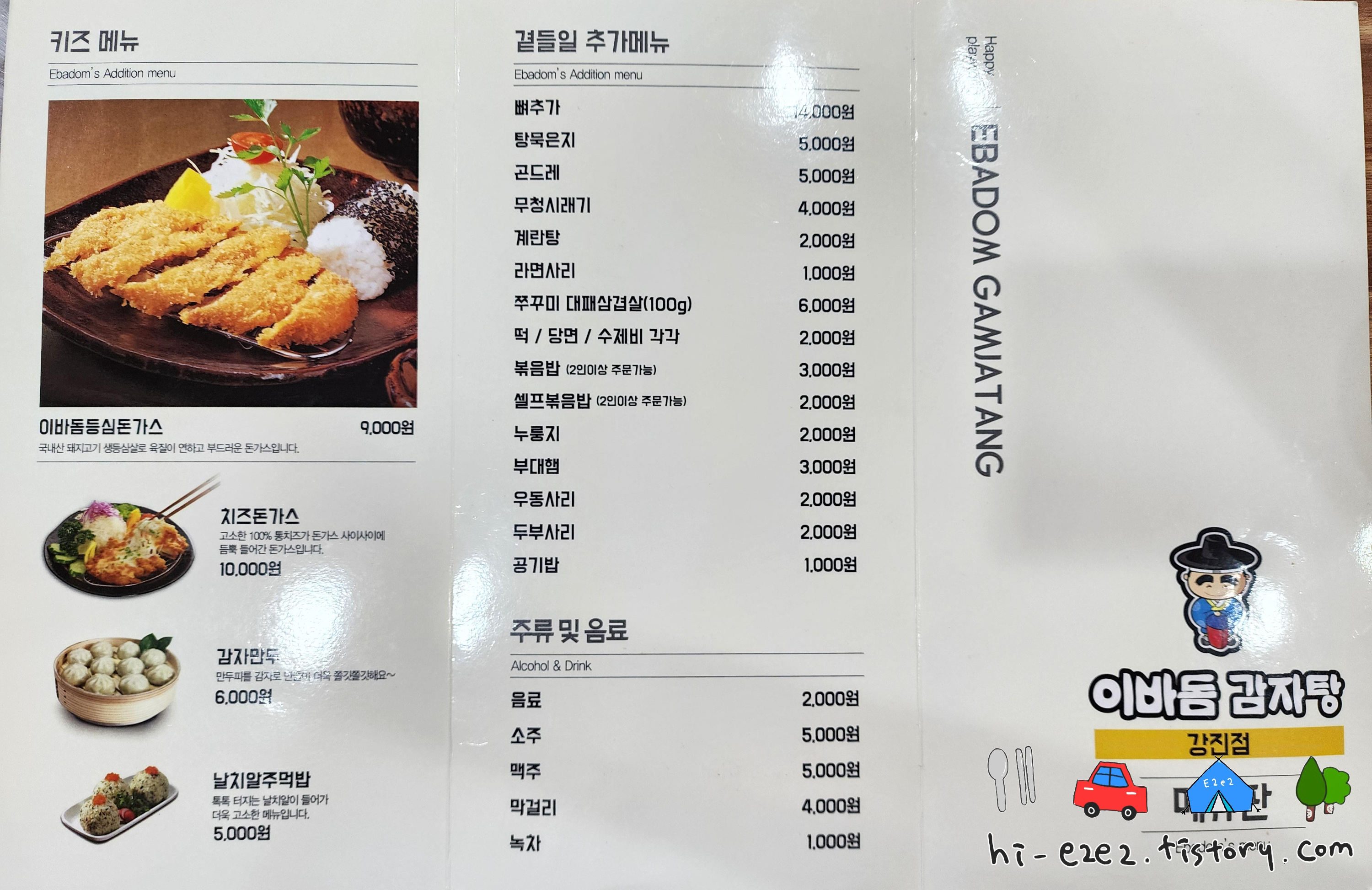 메뉴는 감자탕 전문점답게 전형적인 구성이었고