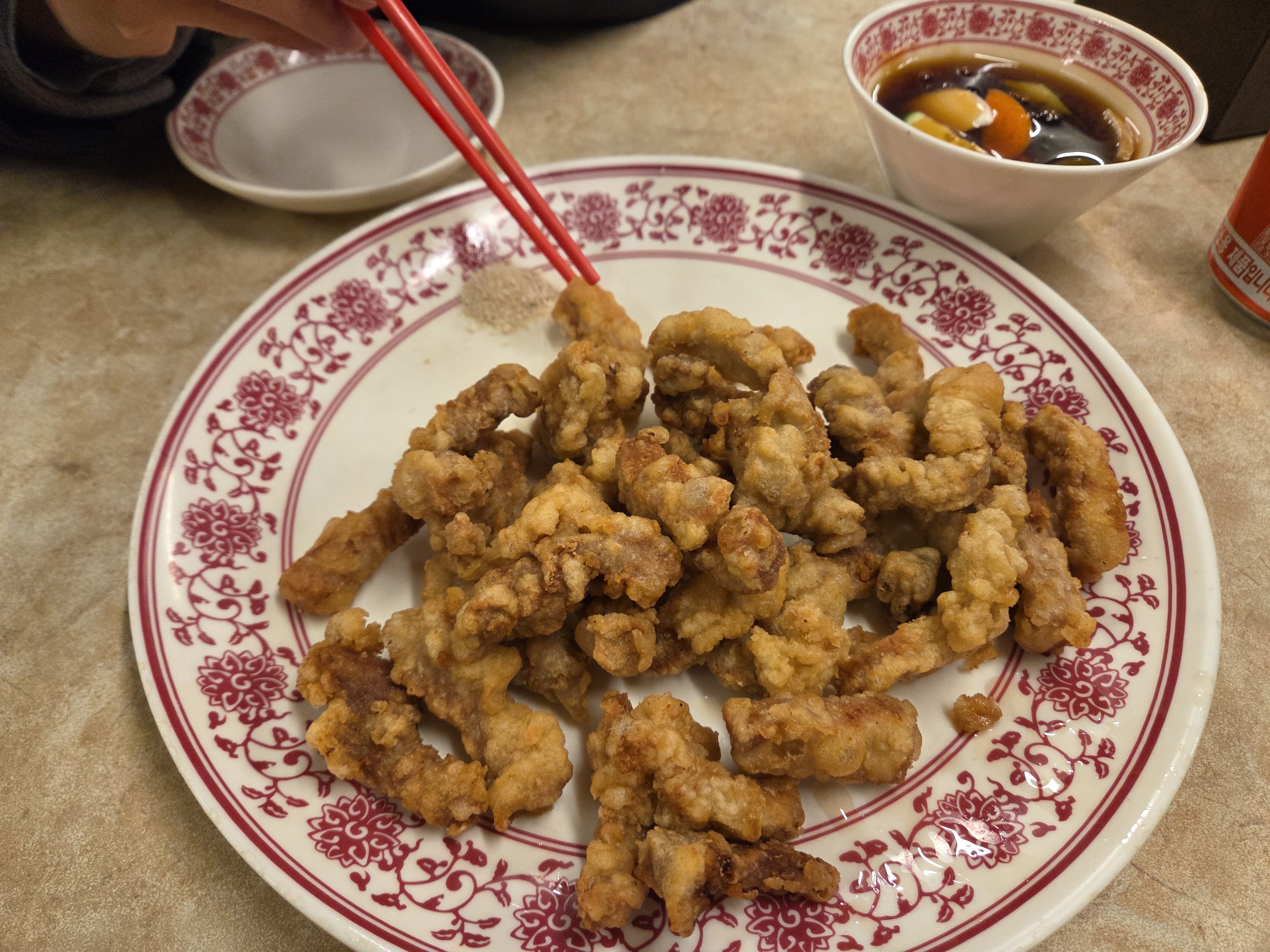 이미 배가 좀 부른 뒤라 간단하게 탕수육 하나만 시켜서 나눠먹었다.