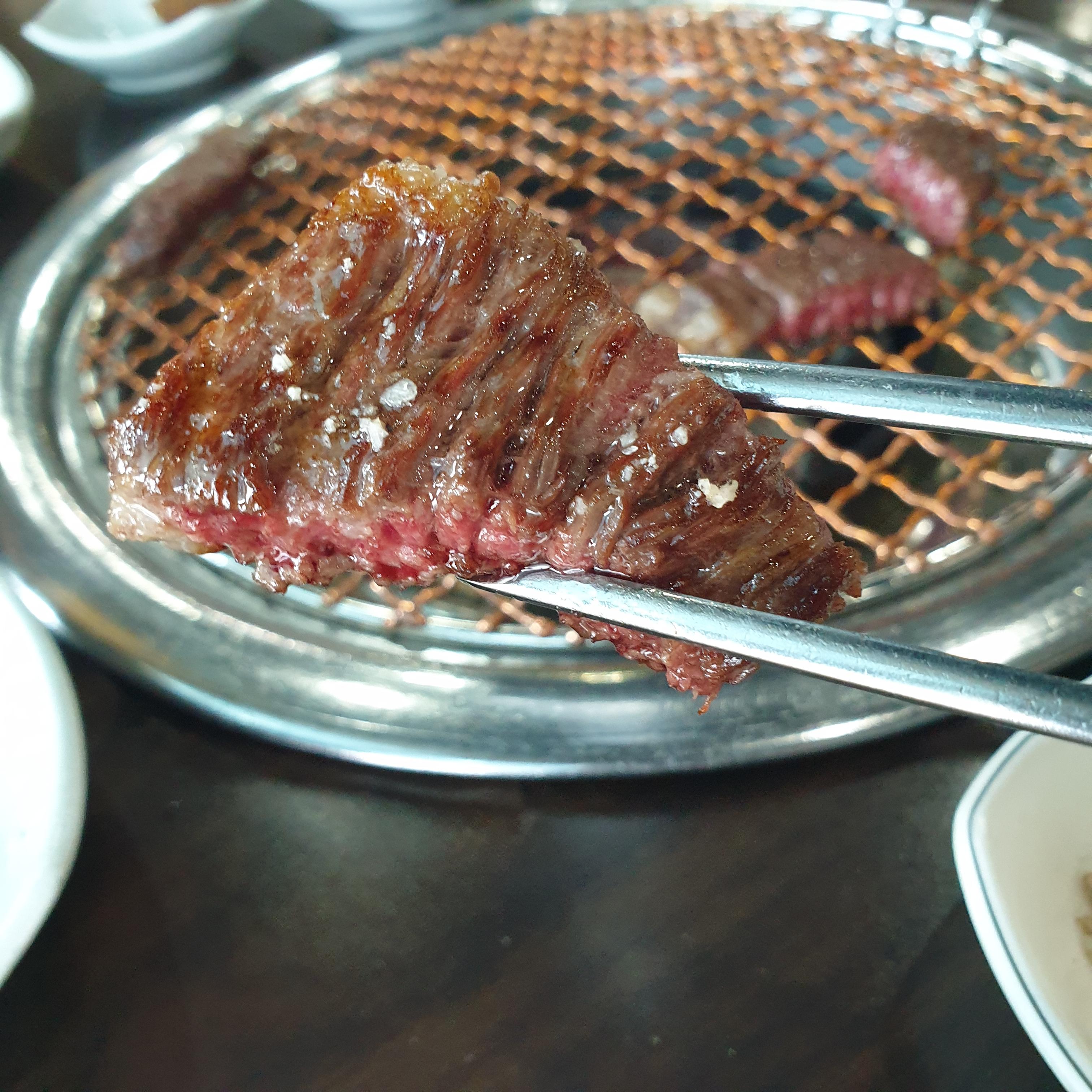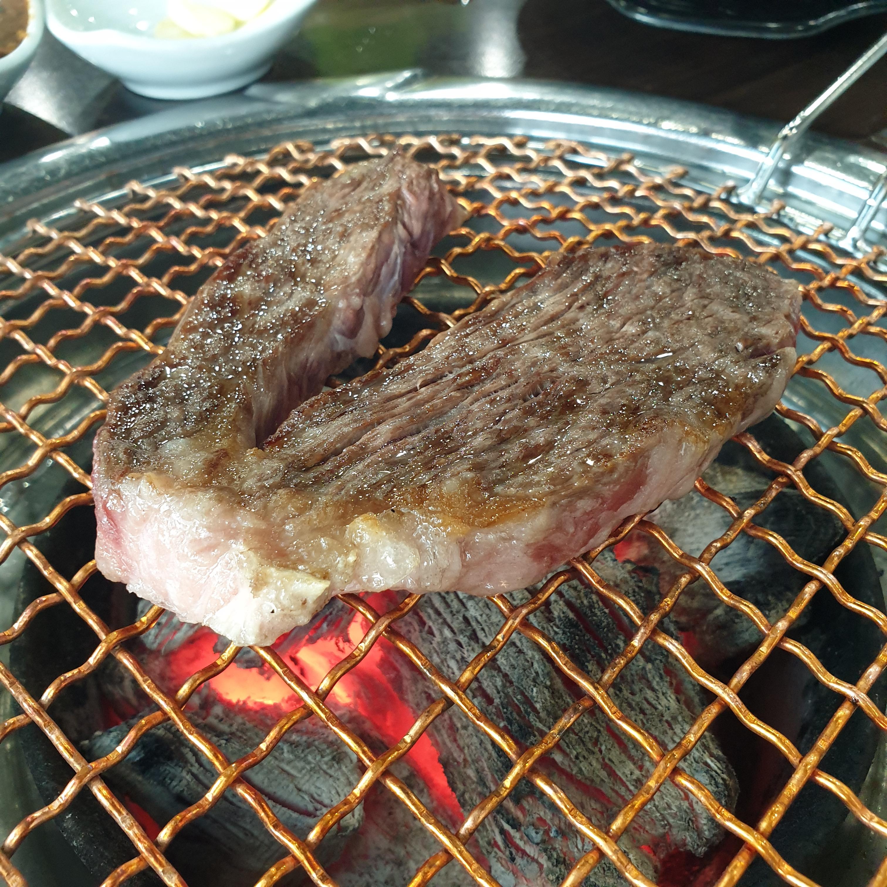 등심보다는 고기맛이 약하지만 보다시피 마블링이 많아 되게 부드럽다. 통째로 먹어도 충분히 다 씹을 수 있을 정도!